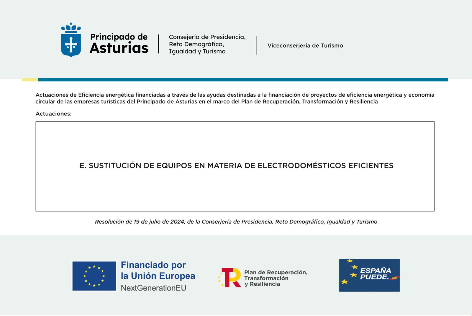 Actuaciones de Eficiencia energética financiadas a través de las ayudas destinadas a la financiación de proyectos de eficiencia energética y economía circular de empresas turísticas del Principado de Asturias en el marco del Plan de Recuperación, Transformación y Resiliencia.